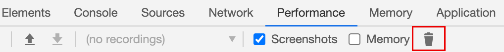 크롬의 또 다른 방법은 성능 탭에 있는 수집 쓰레기 아이콘을 클릭하여 강제로 가비지 컬렉션 지우는 것입니다